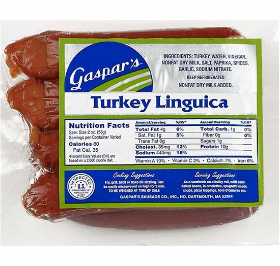Ingredients: Turkey, water, vinegar, nonfat dry milk, salt, paprika, spices, garlic, sodium nitrate.